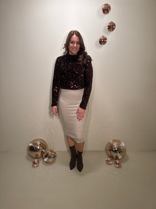JF Exclusive Elin Glitter Jurk Bruin