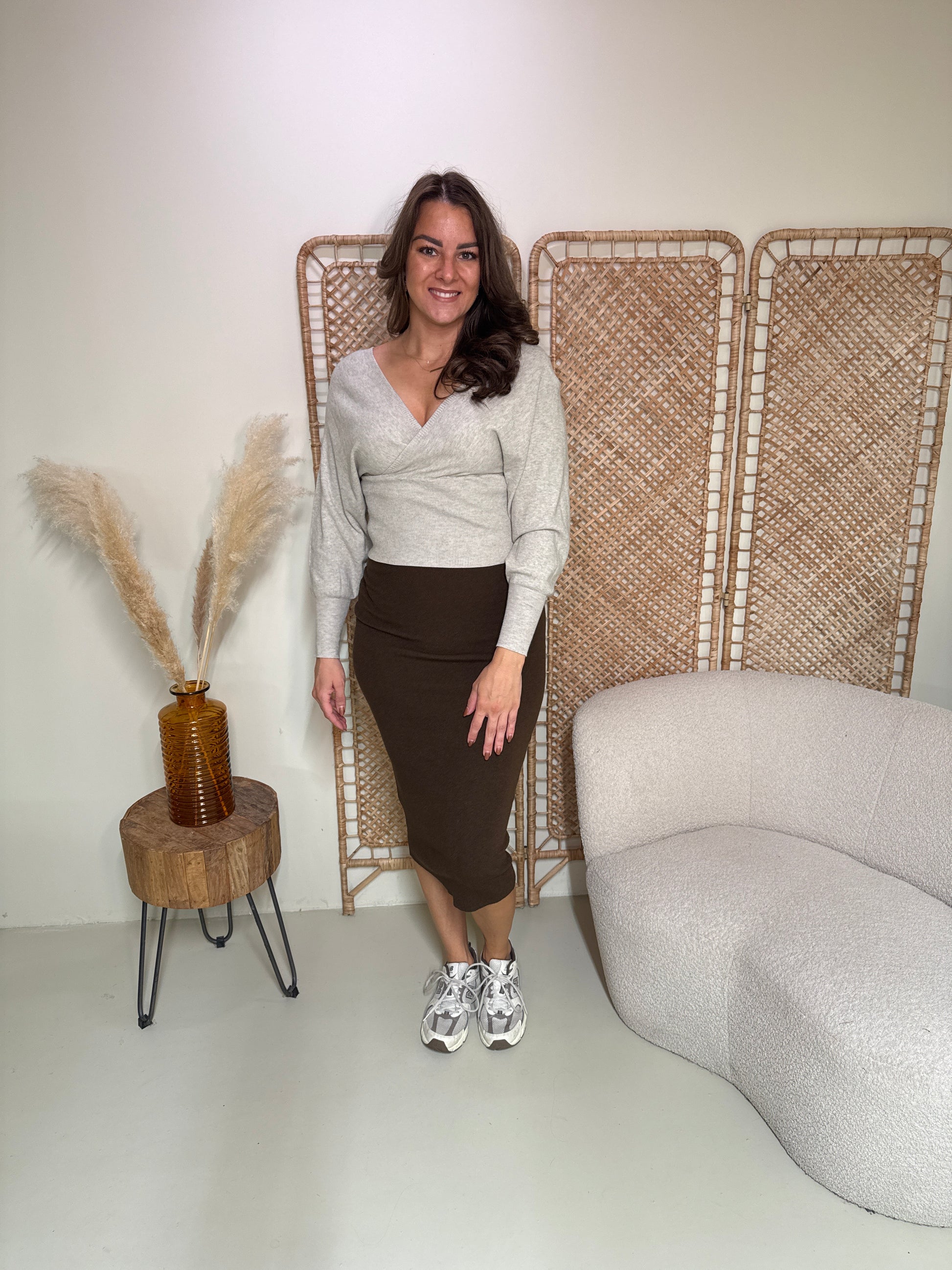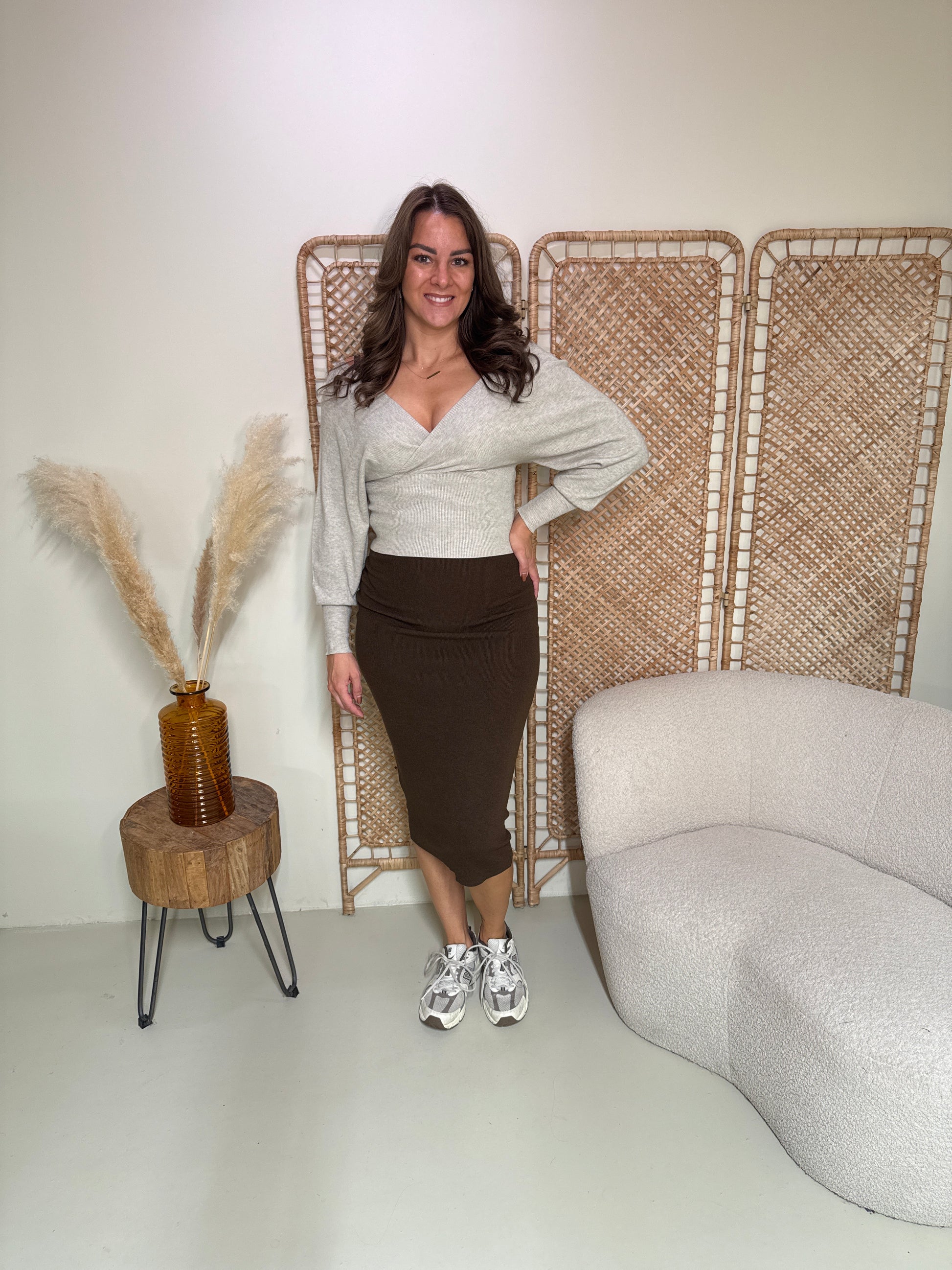 Elegante overslagtrui met een flatterende pasvorm. De zachte viscosemix voelt soepel aan en beweegt comfortabel mee, terwijl de elastische taille zorgt voor een mooi silhouet. Een ideale top voor zowel tijdens als na je zwangerschap. Verkrijgbaar in beige en zwart.