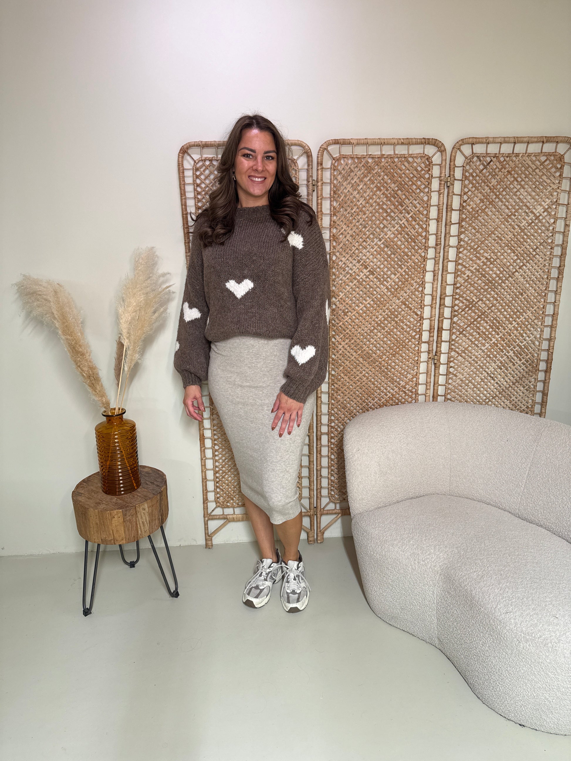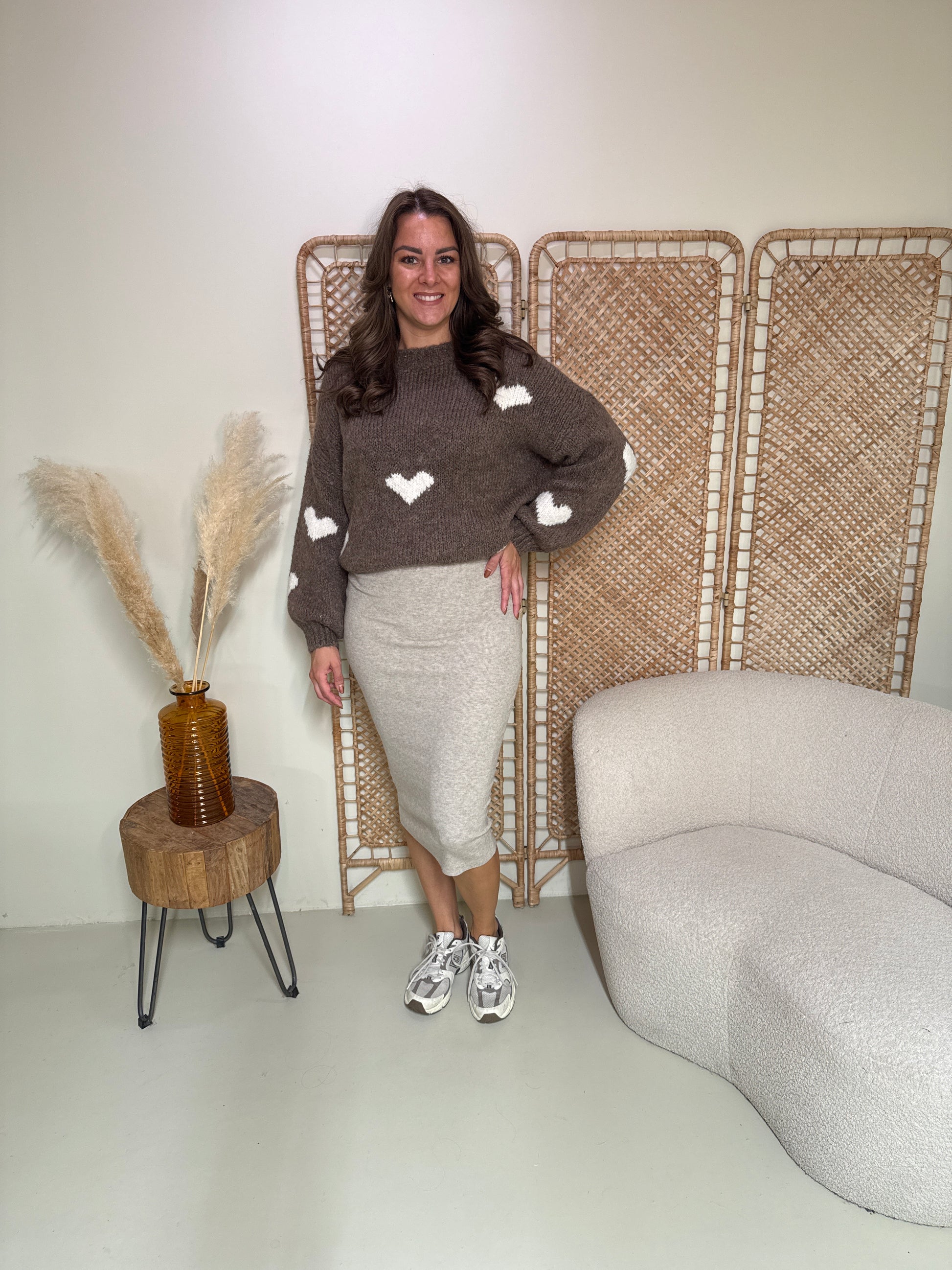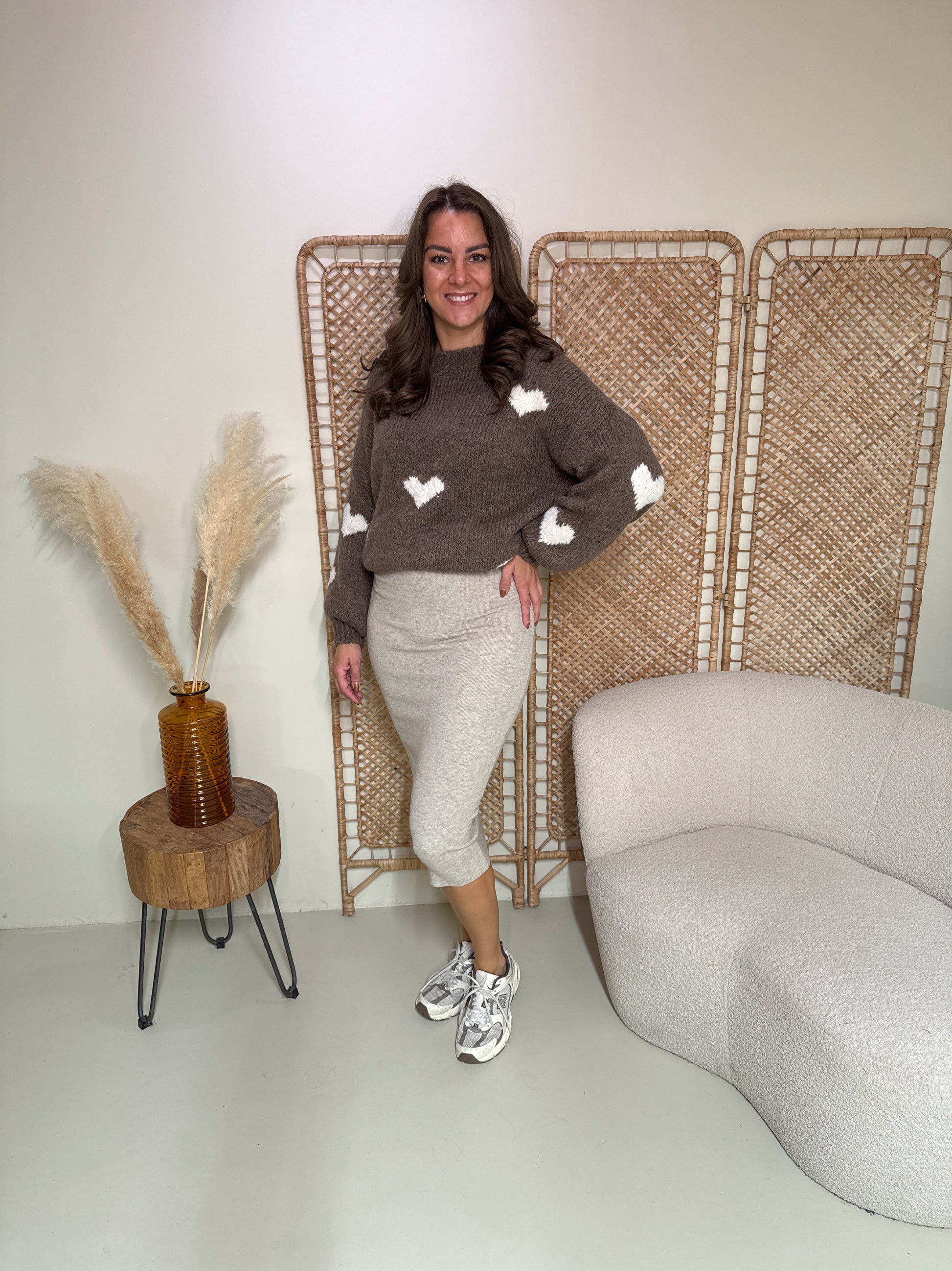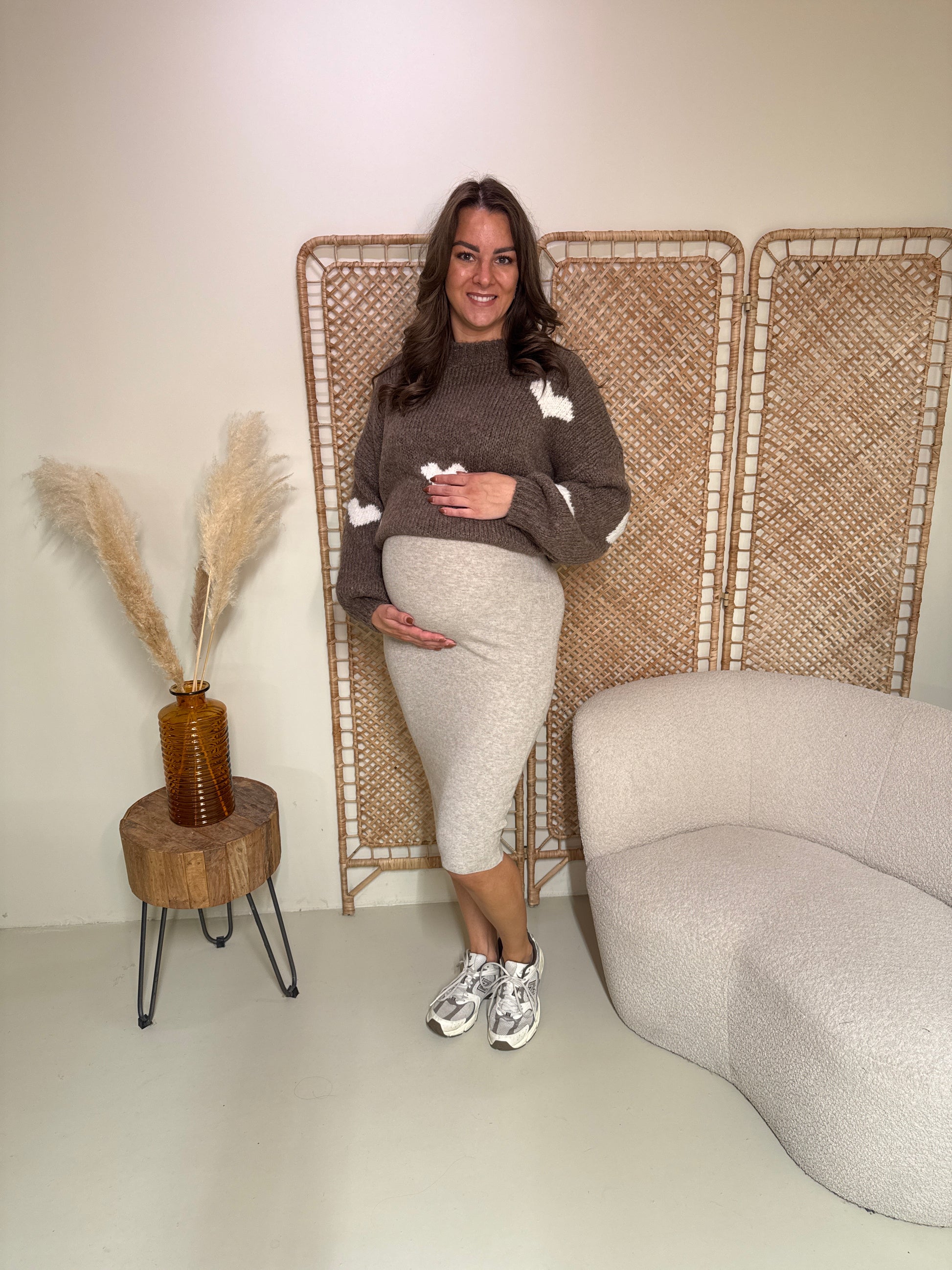 Deze trui met hartjes is gemaakt van een heerlijk zachte brei die niet kriebelt en nét dat beetje extra gezelligheid brengt in je outfit. De relaxte pasvorm valt soepel over of boven je buik (ook fijn als je zwanger bent) en is makkelijk te combineren met een jeans of aansluitende rok. Verkrijgbaar in de mooiste tinten van dit seizoen, zoals bruin, olijfgroen en beige.