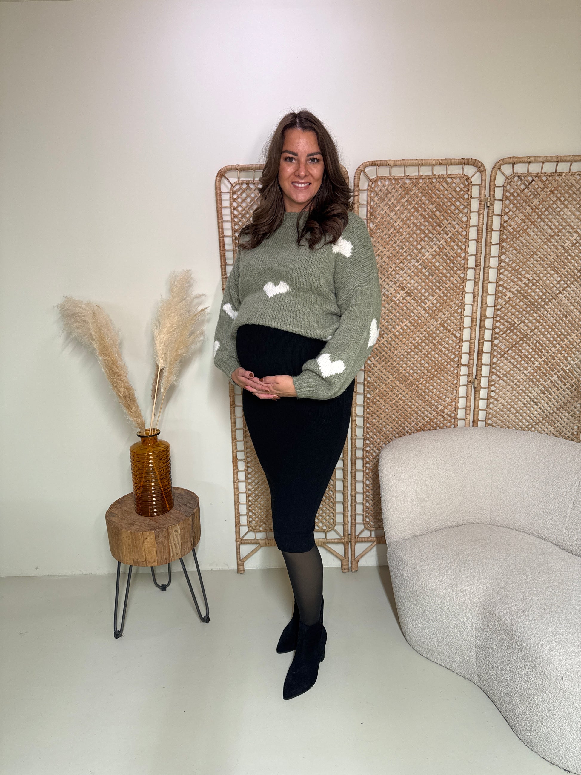 Deze trui met hartjes is gemaakt van een heerlijk zachte brei die niet kriebelt en nét dat beetje extra gezelligheid brengt in je outfit. De relaxte pasvorm valt soepel over of boven je buik (ook fijn als je zwanger bent) en is makkelijk te combineren met een jeans of aansluitende rok. Verkrijgbaar in de mooiste tinten van dit seizoen, zoals bruin, olijfgroen en beige.