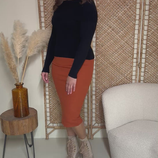 Deze top heeft een rustige, vrouwelijke uitstraling en is perfect voor het voorjaar. De brede halslijn valt mooi over de schouders en geeft een zachte, elegante look. De ribstructuur zorgt voor een fijne stretch waardoor de top comfortabel meebeweegt en prettig zit, ook als je lichaam verandert.