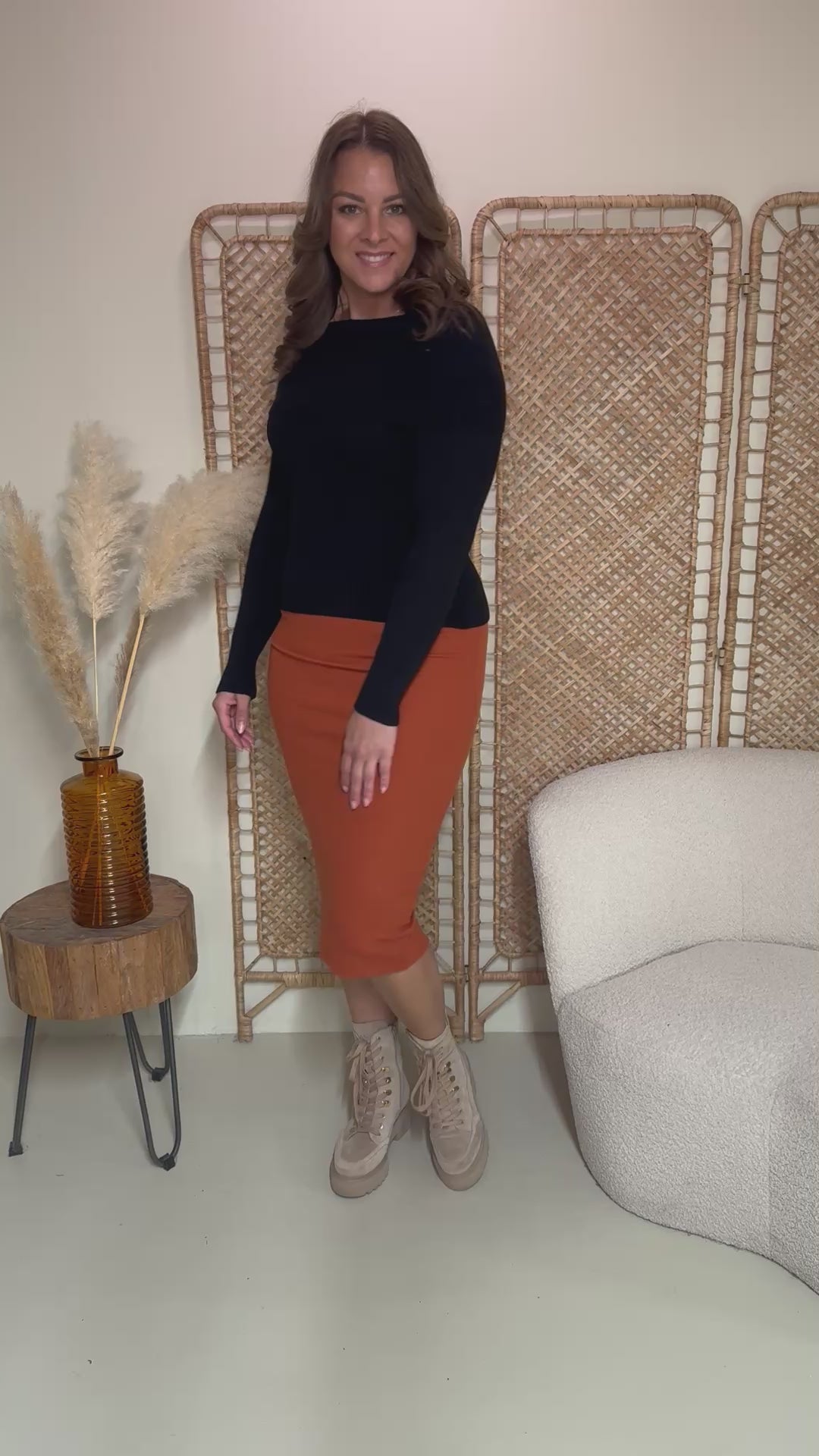 De lange mouwen zijn voorzien van duimgaten, wat zorgt voor extra comfort en een mooie pasvorm bij de armen. De top is aangesloten maar niet strak en combineert makkelijk met een rok of broek.De pasvorm is aangesloten maar niet strak en combineert makkelijk met een rok of broek. Een fijne basic die je zowel casual als iets gekleder kunt dragen.