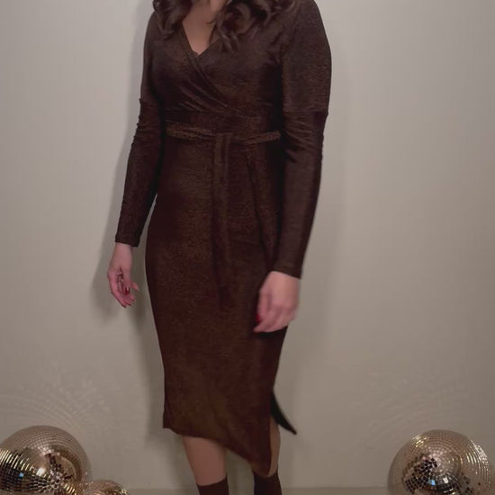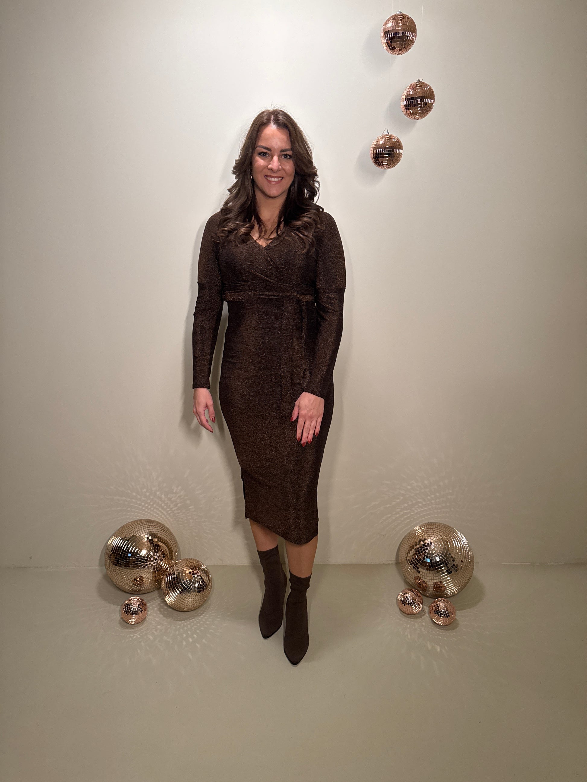 JF Exclusive Elin Glitter Jurk Bruin