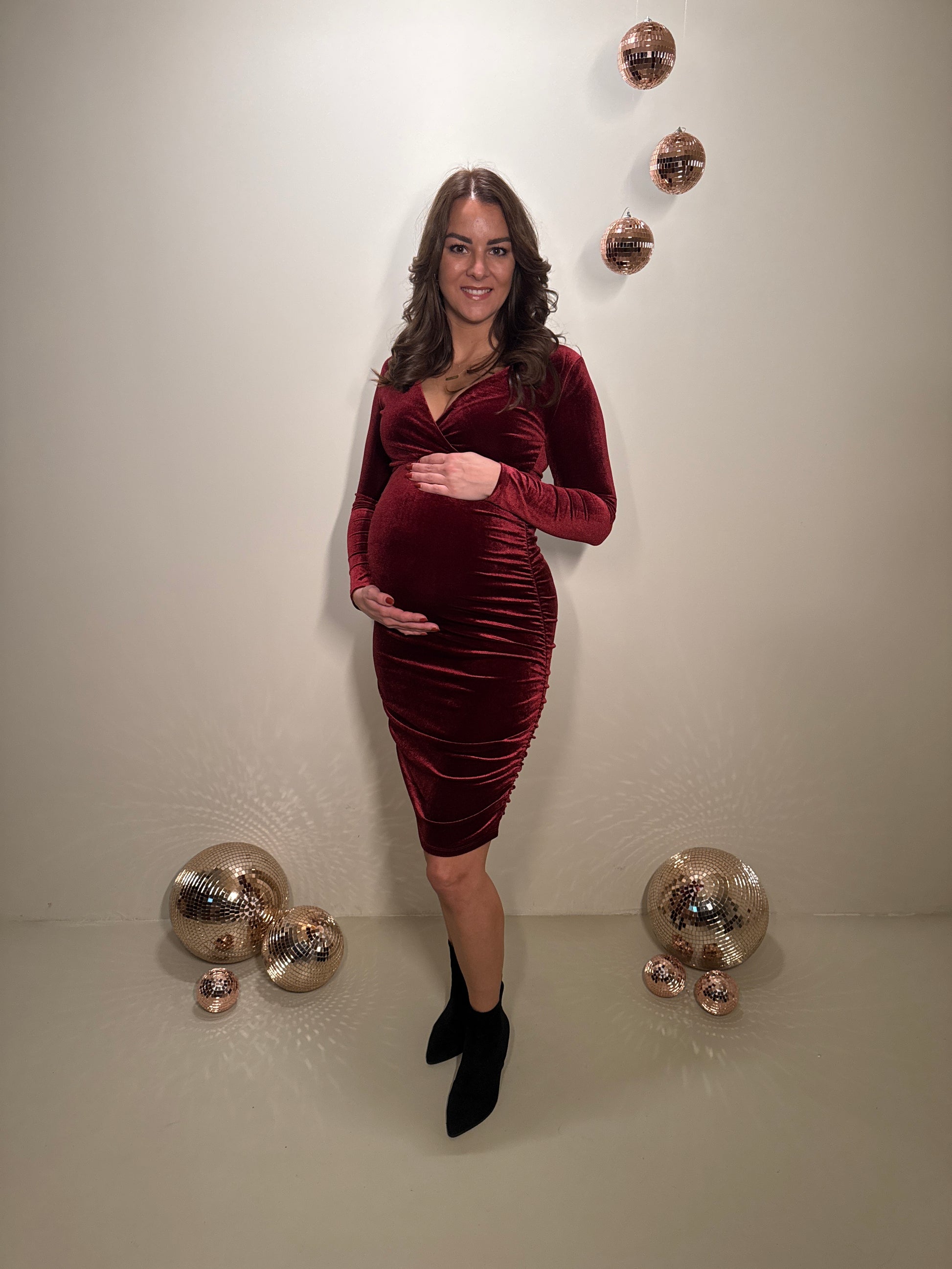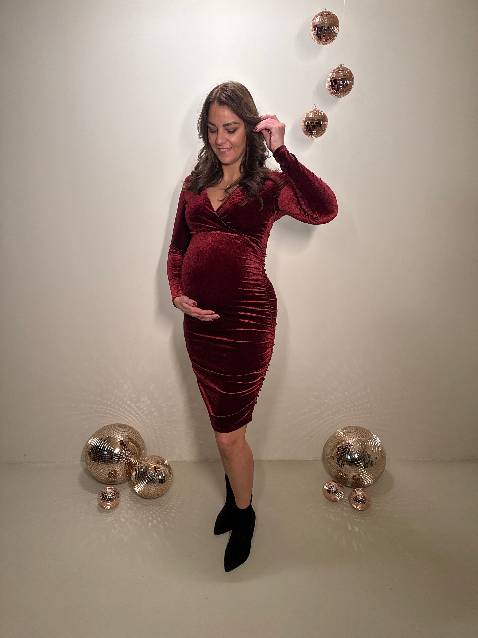 Deze jurk van onze Just Favorites Exclusive lijn is een item met een luxe uitstraling. Gemaakt van zachte fluwelen stretchstof die soepel meebeweegt en comfortabel aanvoelt. De overslag aan de voorkant en de subtiele plooien bij de heup creëren een vrouwelijke vorm die zowel tijdens als na de zwangerschap prachtig valt.