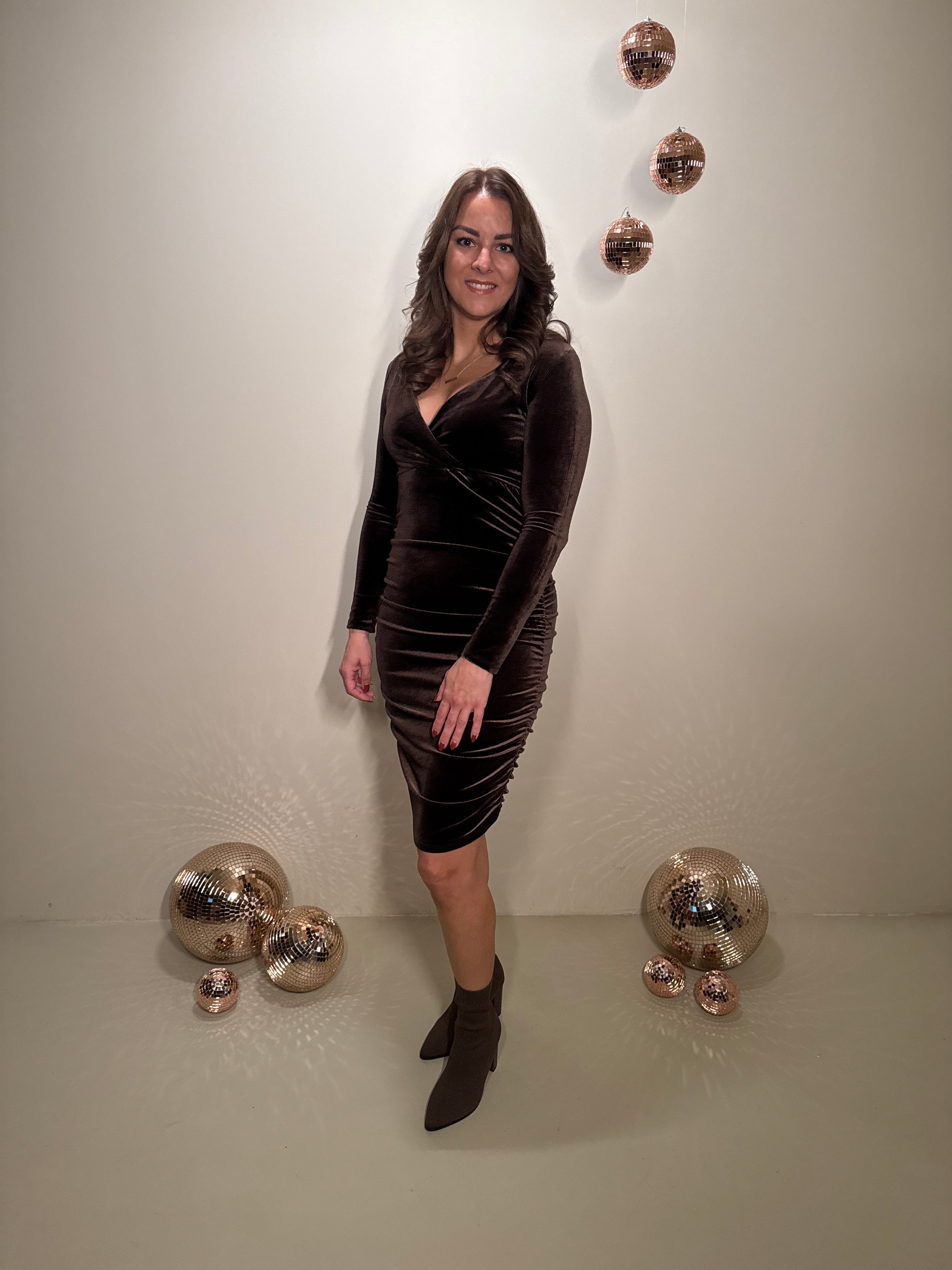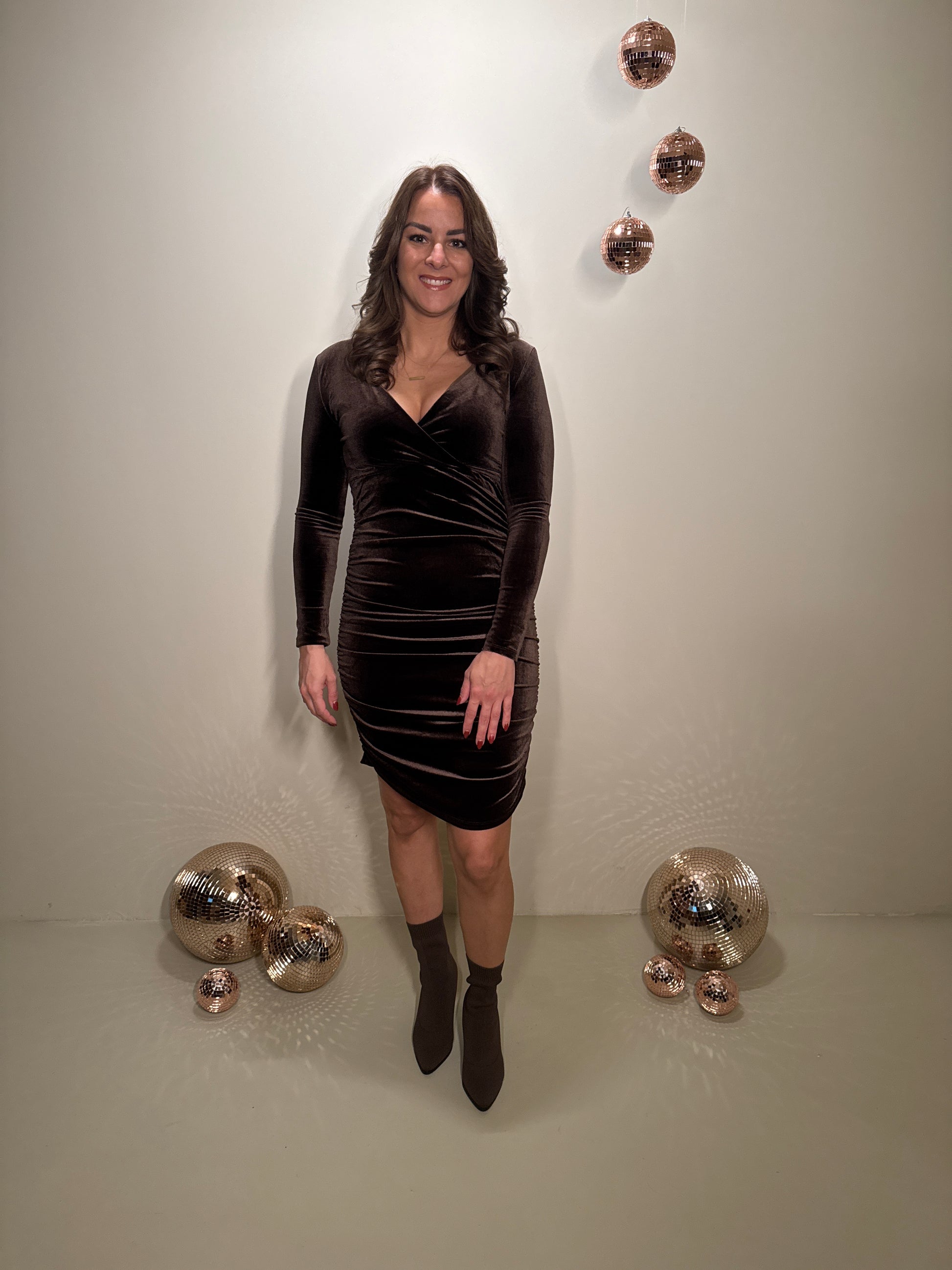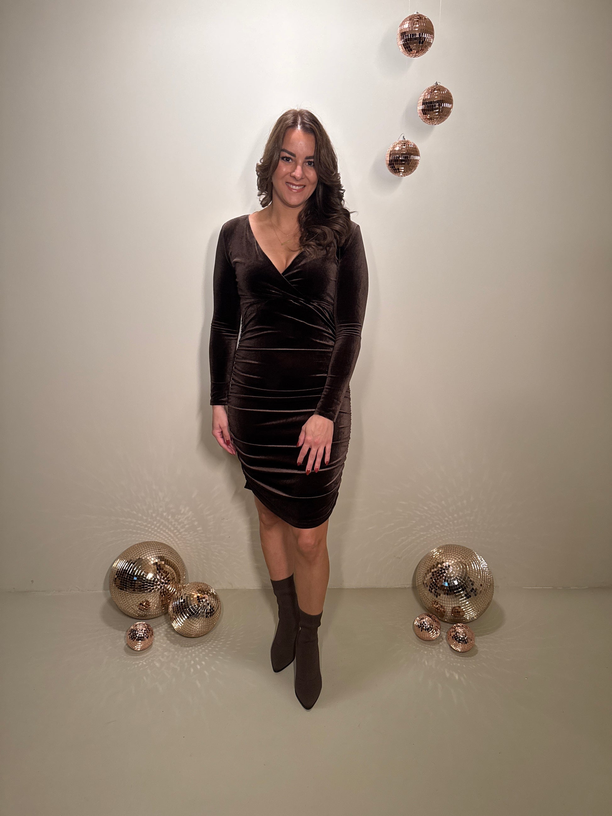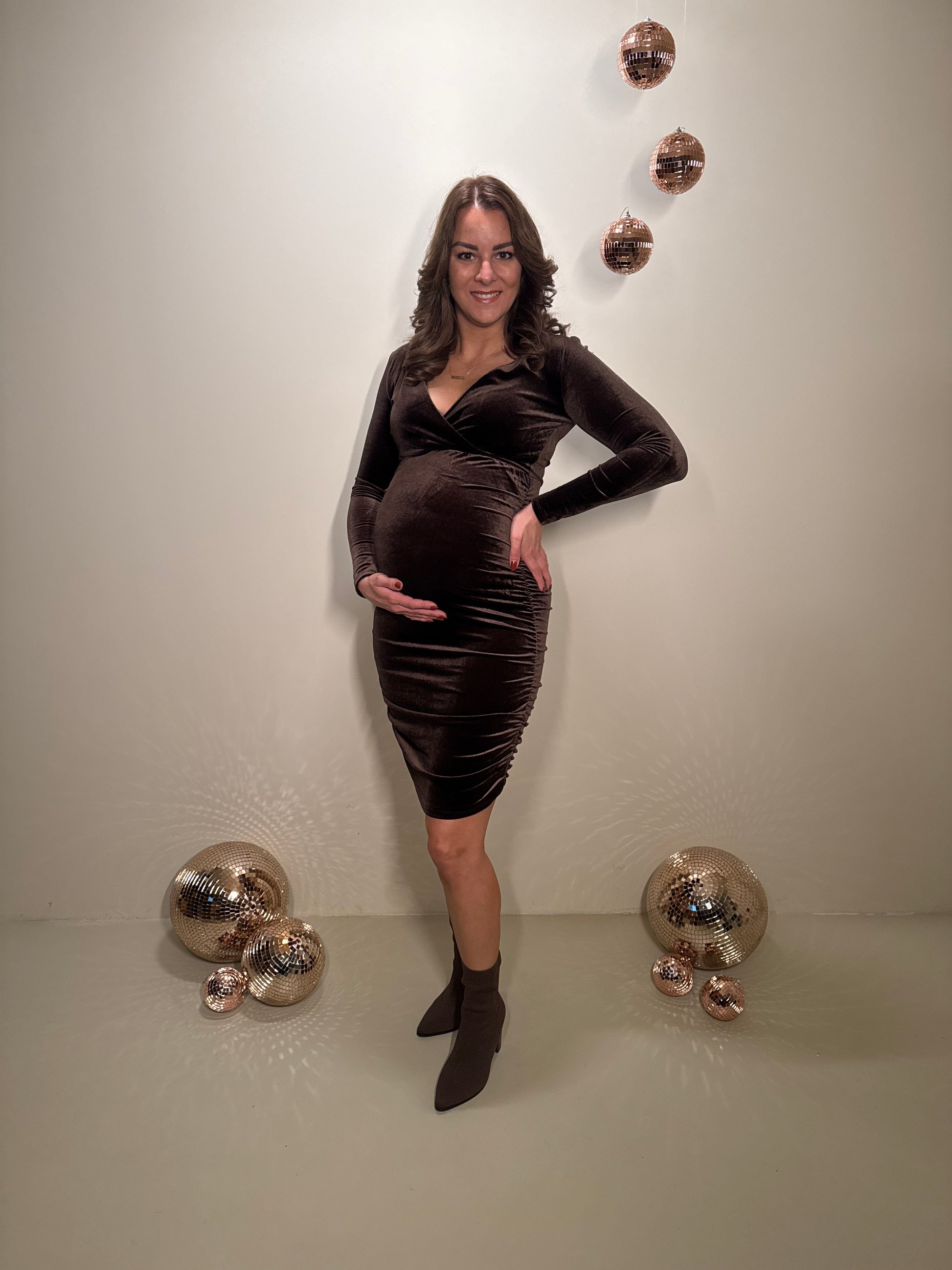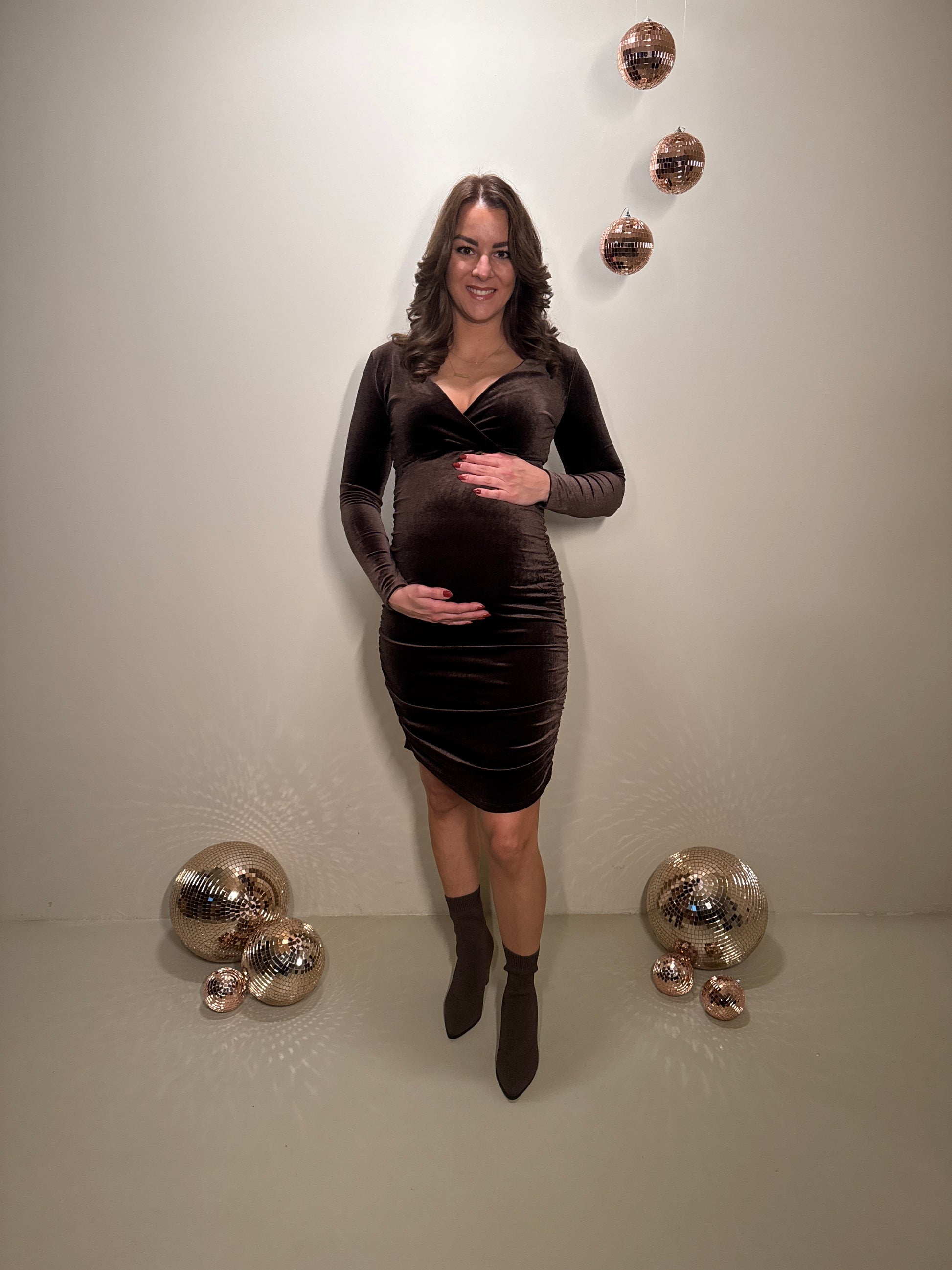 Deze jurk van onze Just Favorites Exclusive lijn is een item met een luxe uitstraling. Gemaakt van zachte fluwelen stretchstof die soepel meebeweegt en comfortabel aanvoelt. De overslag aan de voorkant en de subtiele plooien bij de heup creëren een vrouwelijke vorm die zowel tijdens als na de zwangerschap prachtig valt.