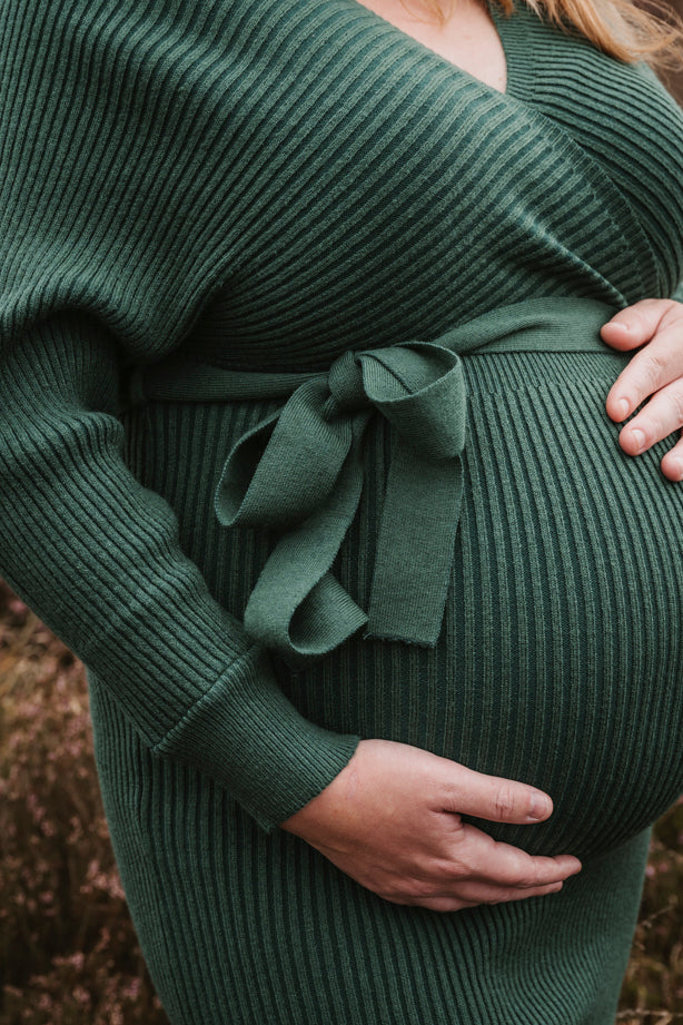De ribstof rekt soepel mee over je buik en de strik in de taille geeft je silhouet een mooie vorm, of je nu zwanger bent of niet.