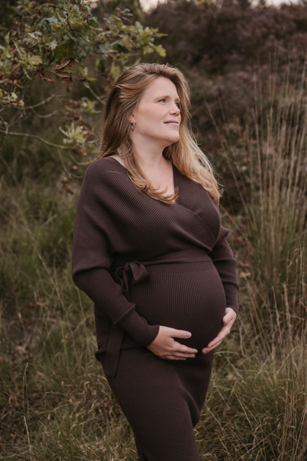 Gemaakt van 100% zachte viscose met een fijne ribstructuur die mooi om je lichaam valt – met of zonder buik. De overslag sluit mooi aan, en met het striklint in de taille geef je zelf vorm aan je silhouet.